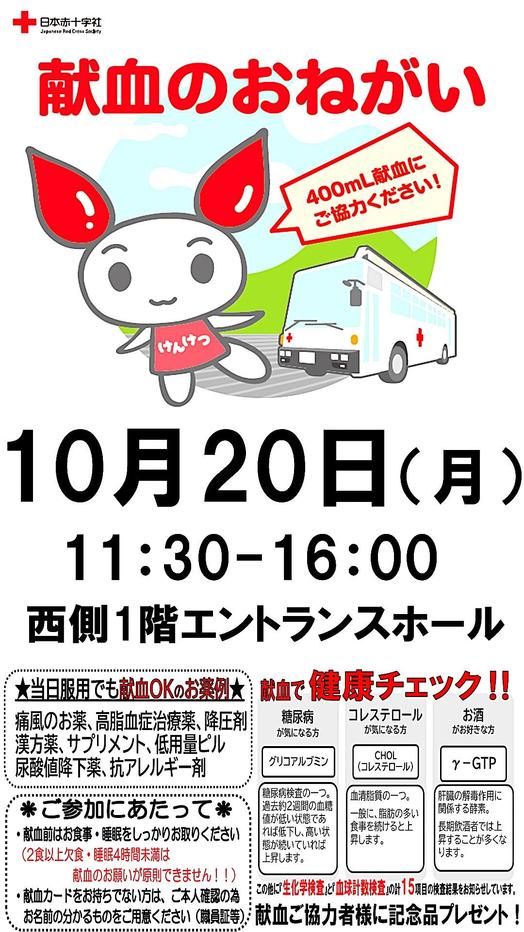 パレスサイドビルは今月20日(月)、ビル西口玄関に献血会場を開設します。東京都赤十字血液センターの献血バスが停まり、献血への協力を呼びかけます。50人以上の協力を求めています。Webサイトで事前予約をすると、スムーズです。予約限定記念品も用意しています。ぜひ、ご協力を。