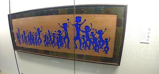 曹洞宗延命寺住職の薄田さんは1948年、新潟市生まれ。青山杉雨、長揚石に師事。2009年毎日書道顕彰、11年新潟県文化功労賞受賞。毎日書道会理事を務めています。刻字は自筆の書を板に写し、板を彫り込んで彩色する芸術で、「People」は中国雲南省などに伝わるトンパ文字(象形文字の一種)の「人」を題材にした薄田さんのライフワークとも言えるシリーズです。