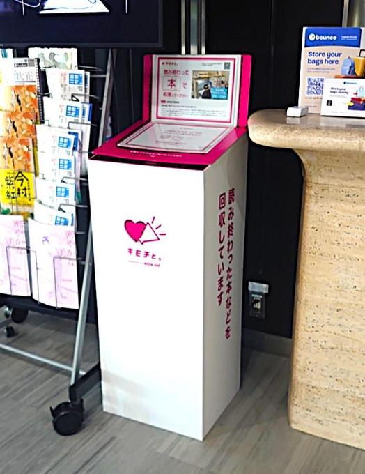 読み終えた本や不用品を回収するポストが、ビル1階西側の毎日新聞社受付カウンター横に設置されました。毎日新聞社の関連団体である公益財団法人「認知症予防財団」(3階)が、不用品をお金に換えて寄付できるサービス「キモチと。」を展開する中古書籍販売大手「ブックオフコーポレーション」の協力を得てポストを置きました。同社が回収品を査定し、換金額を寄付金として認知症予防財団に入金する仕組みです。